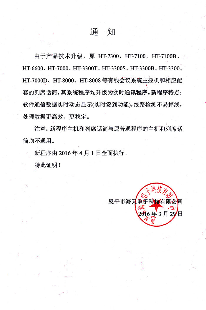 关于HT-910会议麦克风变更通知