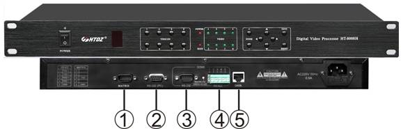 一、HT-8008H视像中央处理器(高清球专用) l配合HT-HD0404S高清混合矩阵使用,实现高清球切换跟踪功能;